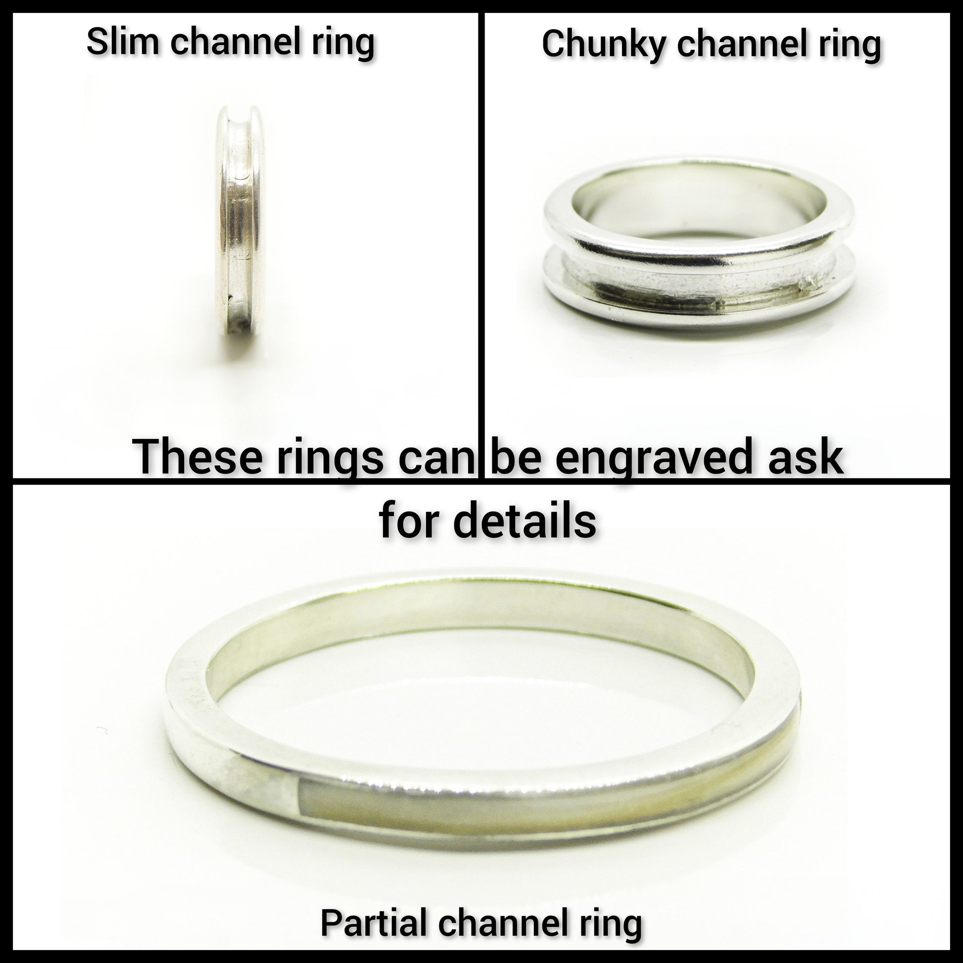If you are confident you know your ring size please select the 'ring size known' option when ordering. However I am happy to send a ring sizer with the inclusions sending kit to ensure the correct size is chosen. All I ask is for the ring sizer to be returned with your kit. For the wider style 6mm channel ring I will make in a half-size larger than requested to allow for the width. Please note rings may be up to one UK ring size (half a US ring size) smaller or larger than requested due to ring sizing mandrel tolerances, how far the ring is pushed down the sizer, the method of sizing and how the sizer is read.