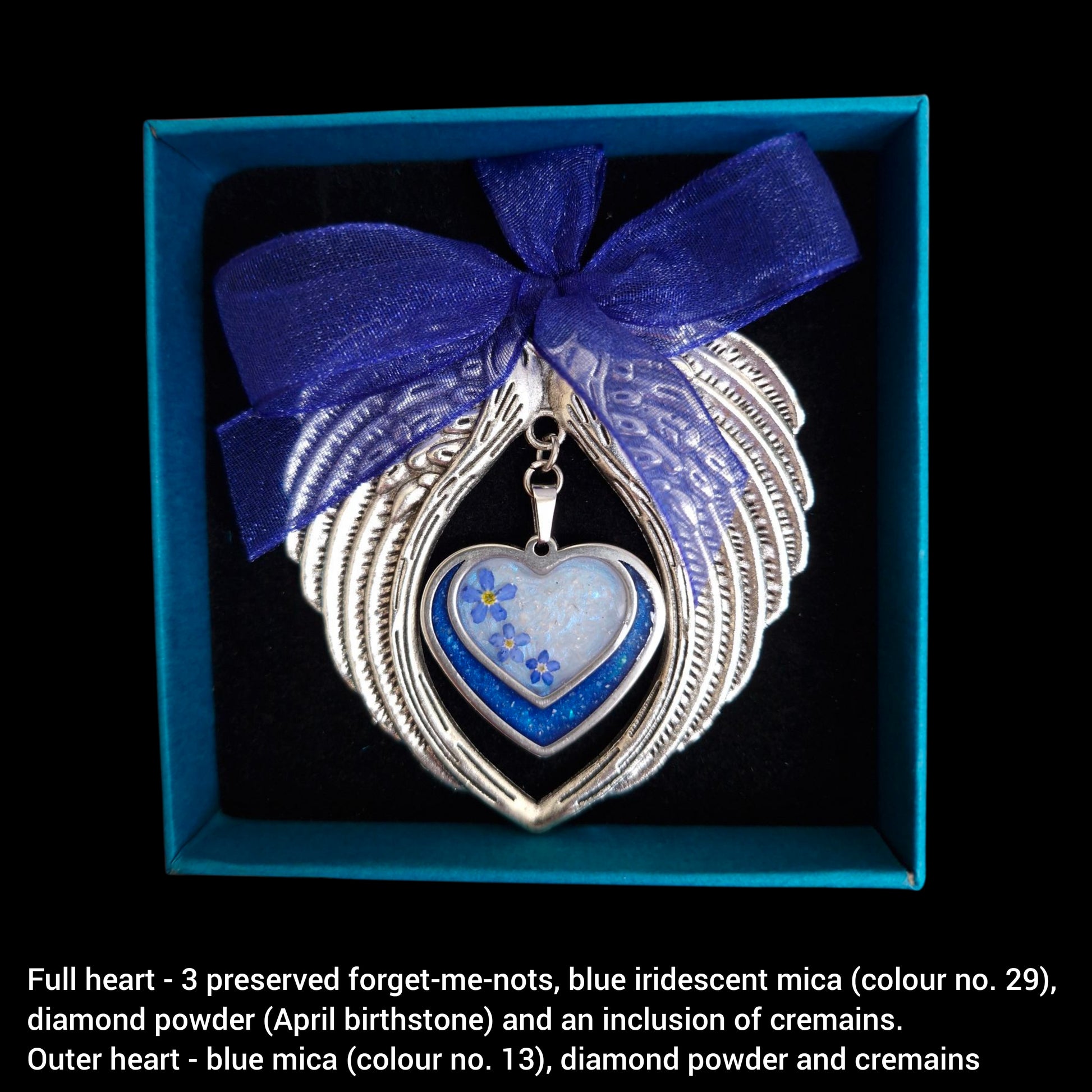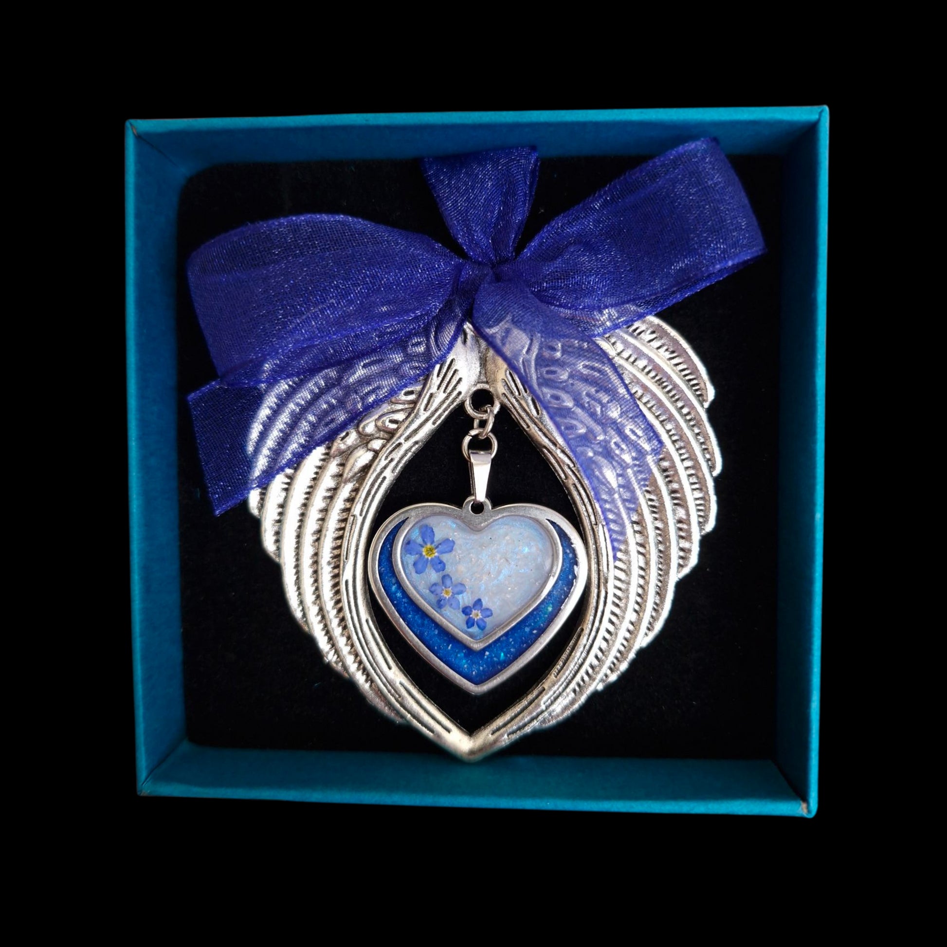 Cremation Ashes and/or Hair angel wings hanging ornament