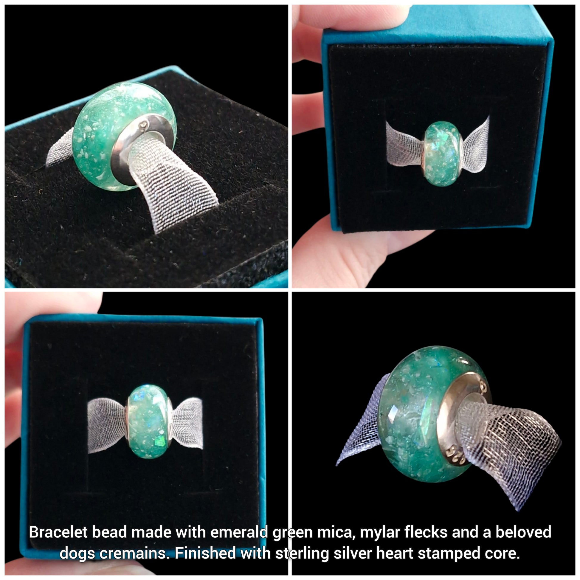 Cremation Ashes and/or Hair Memorial Bracelet Bead with Sterling Silver Cores